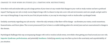 Some environmental changes you might face is moving away from home to a new place, like a new university or even a different county.